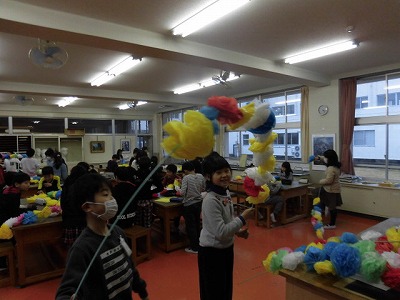 6年生を送る会で入退場の際に、お花のアーチを使用します。