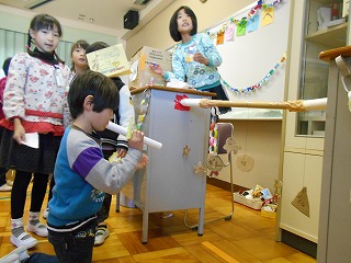 12月16日の3、4時間目。2年生が招待してくれた「おもちゃランド」へ、レッツゴー♪