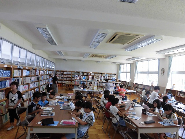 今日は、図書室で、夏休みに読む本を借りに行きました。