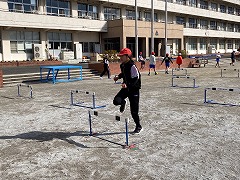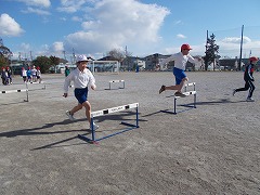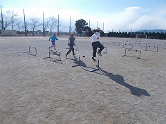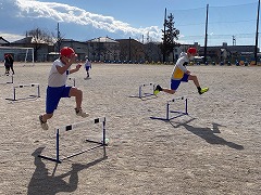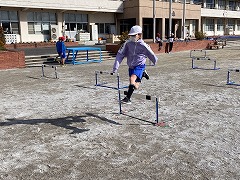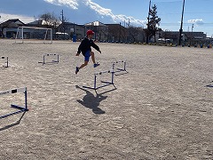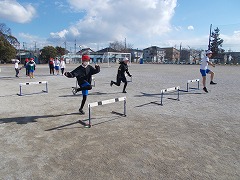 3歩や5歩のリズムで走り越えられるように練習をしています。