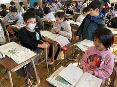 3年生は算数の様子を紹介します。算数では2けた×2けたのかけ算の筆算に取り組んでいます。複雑な計算手順に戸惑いながらも前向きな気持ちで繰り返し行うことができています。また、授業の初めに九九の復習にも取り組んでいます。今日は、お互いに筆算の計算手順を伝え合うことができました。