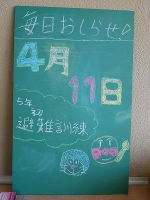会社活動が始まりました。下の写真は、「毎日お知らせ会社」のもので、何と手作りのブラックボードです。