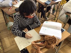 3年生は国語の様子を紹介します。国語の物語を書き進めています。表現の工夫や、構成、主人公の変化を意識しながら書くことができています。完成が楽しみです。