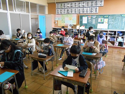 10才の節目に感謝の思いと将来の夢について体育館で発表しました。1人1人が思いを込めて発表した後、教室で、保護者の方々の手紙を読みました。手紙を読んだ後、1人1人が感謝の思いを手紙に表していました。