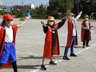 今日の3・4年生の練習では、追っかけ綱引きと短距離走の確認をした後に、応援の練習をしました。5・6年生が競技をしているときの応援は、4年生の応援団と4年生が1~3年生をリードします。今日の様子からすると、明日はバッチリですね!