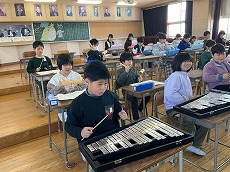 3年生は音楽の様子を紹介します。これまでの学習をいかして合奏を行いました。それぞれが練習の成果を発揮しながら、仲間と協力して素敵な演奏ができましたね。