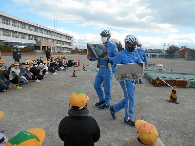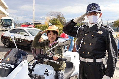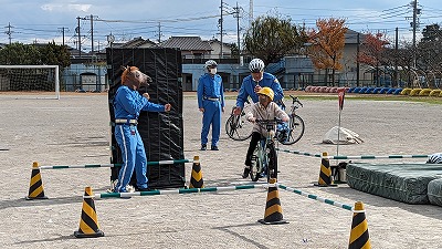 ヘルメットの正しいかぶり方や一時停止の正しい止まり方などを学びました。