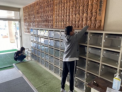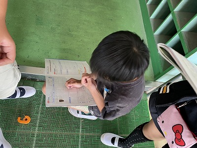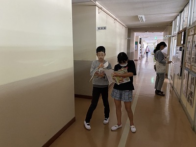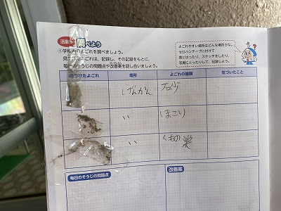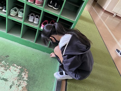 廊下で何をしているのかと思ったら・・・学校内の汚れを調べていました。