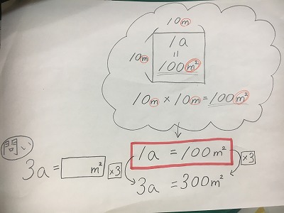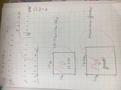 「a(アール)」「ha(ヘクタール)」を習いました。
