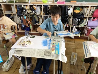 図工の時間には、学習成果展に向けて作品を作り始めました。