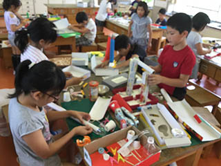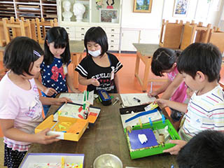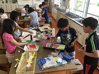 出来上がったなかまの作品で、どんな仕掛けがあるのかわくわくしながら、楽しそうに遊んでいました。