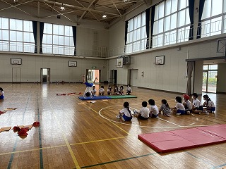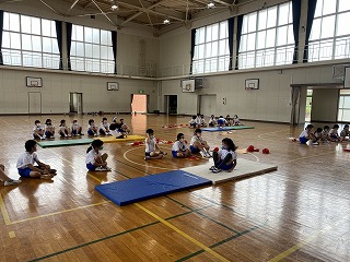 体育のマット運動での授業の様子です。