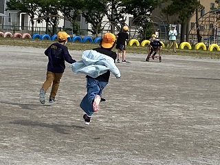 そして種まきの後は、みんなでおにごっことドロケイをして遊びました。汗をかきながら、みんなとても楽しそうに走り回っていましたね!