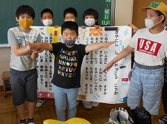本日(5月26日)の3時間目は、1年生へ校歌の歌詞がかかれた紙をプレゼントしに行きました。