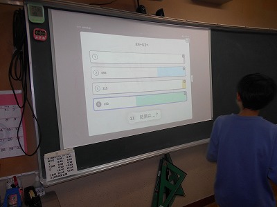 ロイロノートのテスト機能を活用し、算数の問題を作りクイズ大会を行いました。