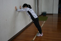 手はまっすぐかべにつきましょう。