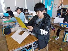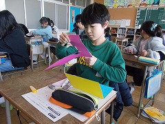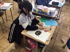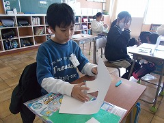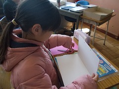 図工の時間には、飛び出す仕組みのカードを作っています。