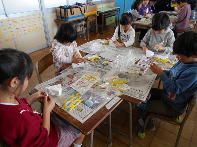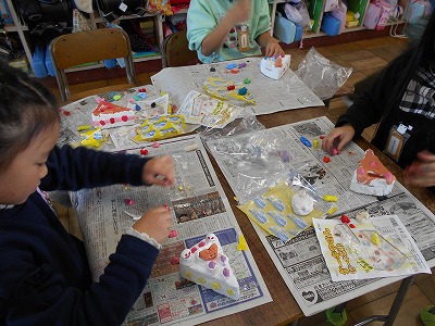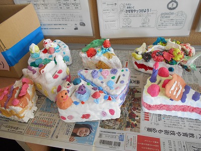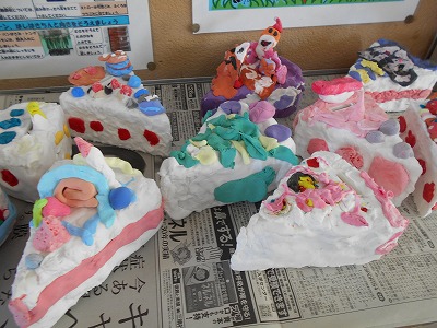 今日の図工の授業では、紙粘土でケーキを作りました。