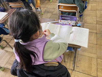 「~ました。」と「~です。」「~ます。」の文末の言葉から、「調べたこと」と「考えたこと」を読み分けました。