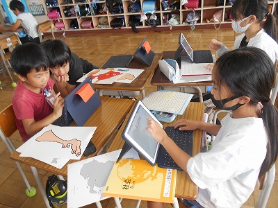 1組は、社会科と総合的な学習の時間を使って、47都道府県クイズに取り組んでいます。