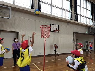 体育ではセストボールをやっています。初めの授業では、パスとシュートの練習をしました。動いている人にパスをするのは少し難しいので心配していましたが、こつを掴み始めたらどんどん上達していきました。