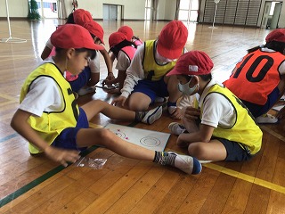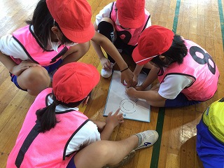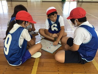 そして、今回は「作戦ボード」を使って作戦を立てることも経験しました。止まっているとパスがもらえないことを知り、どう動けばいいのかを考えたり、速く攻めるためにはどこを走ればいいのかを話し合ったりしました。
