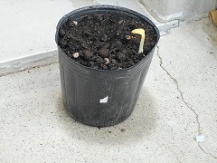 5月1日(金)にヘチマの種を植えましたが、11日たった今日、ついにヘチマの芽が出てきました。