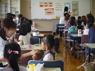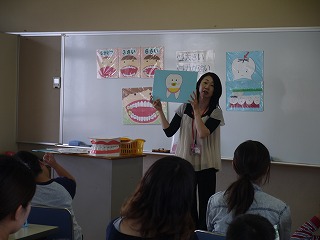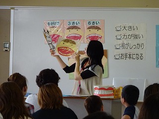 給食のあとは、佐屋保健所の歯科衛生士さんに『6才臼歯を大切さ』をお話ししていただきました。