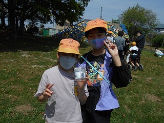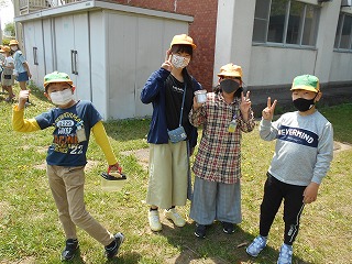 まずは動物のようすをみるために、なかよし山の周りへみんなで行き、カエルやテントウムシ、モンシロチョウなどを見つけ、観察しました。