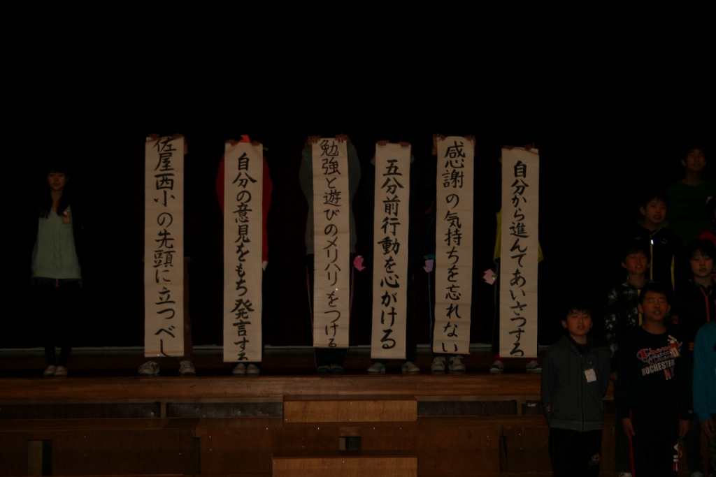 6年生が最高学年としてやってきて、大切だと思った6年生としての心得を5年生に伝えてくれました。同時に、佐屋西小学校の最高学年としてのバトンを渡されたようにも感じとれました。この巻物に書かれたことを胸に、残りの生活、6年生になってからの生活を頑張っていけるとよいと思います。