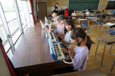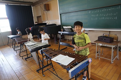 音楽では、木琴やリコーダー、オルガンに分かれて、パート練習を行っていました。