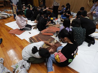 頑張って作ってきた木が形になってきました。昨日作った新聞を丸めた材料と、少し前に作った木の色に塗った紙を、白の大きな台紙に貼っていきました。「色を合わせよう。」や「ここはもう少し細くしよう。」とみんなで意見を出し合いながら、自分たちの力でやり遂げてくれました。