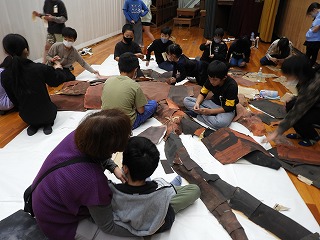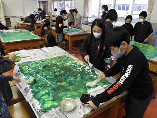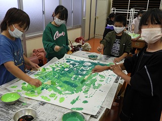 そして6時間目は、最後のパーツになる「葉」の部分の色塗りもしました。