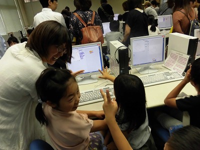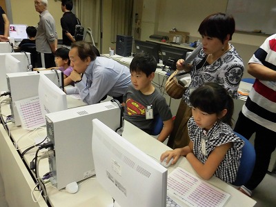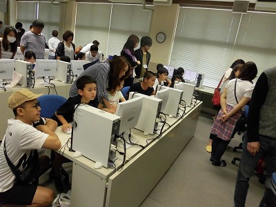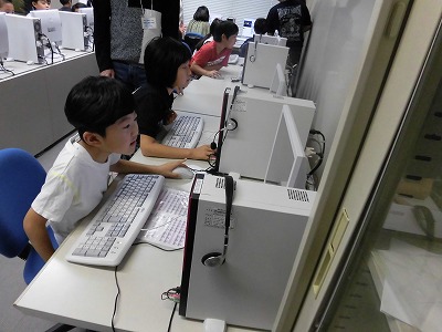今回はお家の方に、コンピュータ室で子供たちがコンピュータを操作する姿をみていただきました。