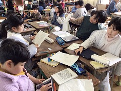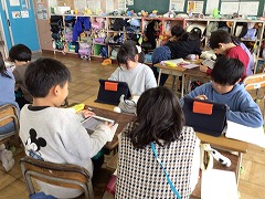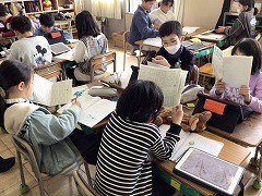 3年生は国語の様子を紹介します。完成した物語文を読み合いました。お互いに表現の工夫や、物語の構成などに注目して感想を書き合うことができました。