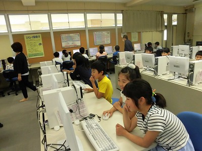 ICT支援員さんを招いて、コンピュータを使ってプログラミングを勉強しました。