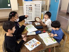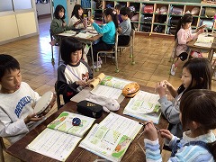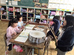 グループになって「かぼちゃ」を歌いながら楽器を演奏しました。