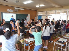 その後は、日本だけでなく、アメリカや中国、ロシアなどさまざまな国々のあいさつに触れ、気づいたことを発表したり、英語でのあいさつの練習をしたりしました。