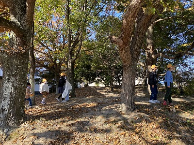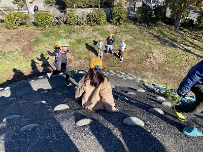 休み時間になると、多くの児童がなかよし山でおにごっこをしています。