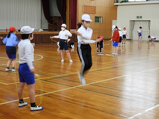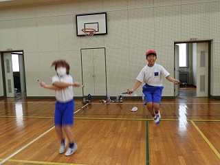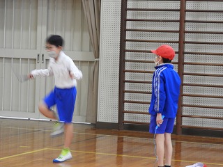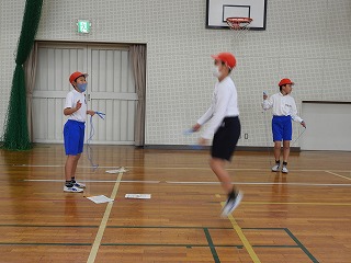 初めて二重とびを連続で跳べたり、初めてハヤブサを跳べたりと喜んでいる姿を見ることができました。得意な子が周りの子に見本を見せたり、教えたりしている姿もとても良いなと思いました。