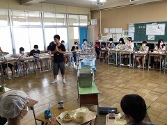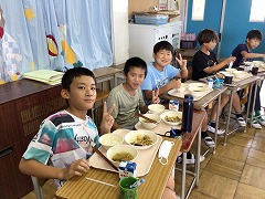 給食は輪になって楽しく会食しました。夏休みが明けても元気な姿をみせてくださいね。