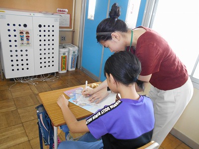 外国語の授業では、1から100までの言い方を体を動かしながら楽しく学んでいます。
