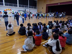 初めは、後ろで踊っていた6年生も最後には、1年生の隣で踊ってくれました。