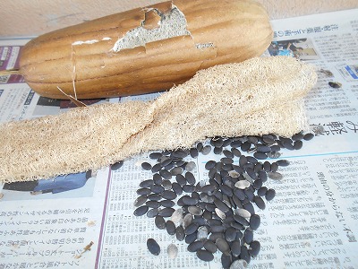 ヘチマの種を取りました。実は枯れてしまっても種をつくって生命をつないでいくことが分かりますね。
