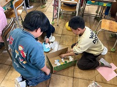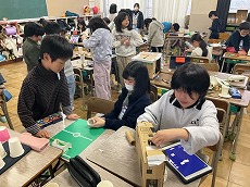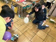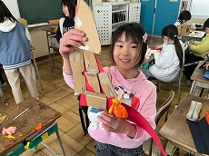 理科では、作ったおもちゃで楽しく遊ぶことができました。感想を伝え合う姿も見られました。
