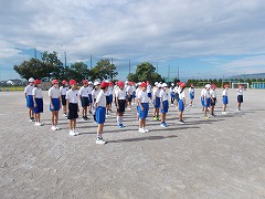 アップを兼ねて走った後に、運動会で行う演技の隊形を確認しました。