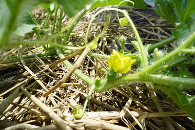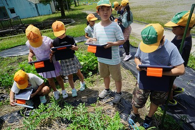 総合の時間に、スイカやトウモロコシ、枝豆の様子を観察しました。