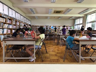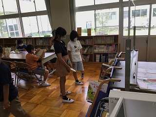 3時間目は図書室に行き、夏休み中に読む本を探しました。自分の好きな分野の本を選んだり、普段は読まない分野の本にチャレンジしている子もいました。