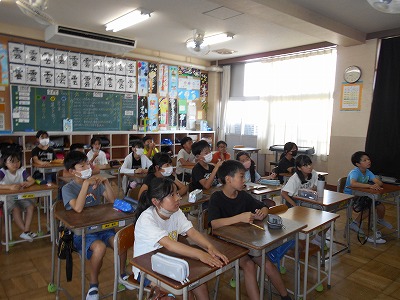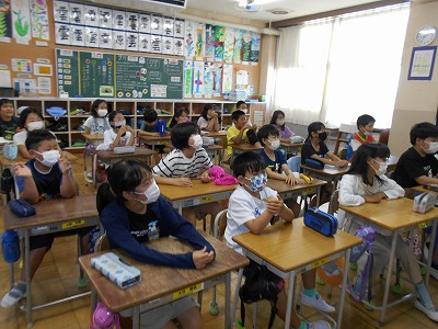 3連休明け&連日の猛暑で朝から疲れ気味の子ども達でしたが、ハッピートーク朝礼のおかげで元気になりました。