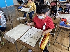 初めての彫刻刀をは思えないほど上手に彫り進めています。